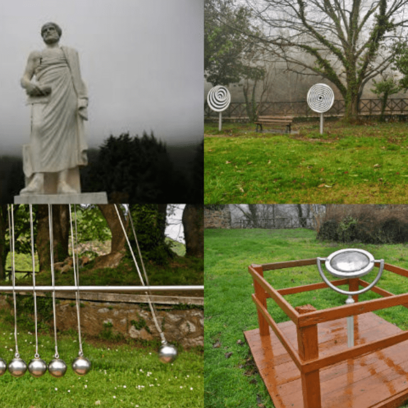 Engage directly with Aristotle’s ideas through 15 interactive physics instruments (compass, sundial, flashlight, water turbine, inertial spheres, etc.), installed in 2003